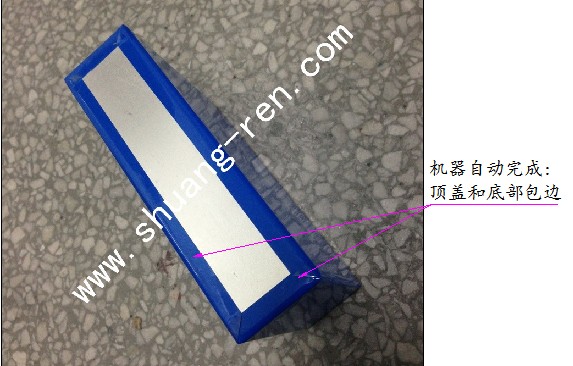 手(shǒu)動放入電池到(dào)滑動滾筒上放(fang),雙手按啓動按(an)鈕==>推力夾具推(tuī)動電池==>電池阻(zǔ)力夾具定位電(dian)池==>卷料放卷,背(bei)膠滾筒背膠==>下(xià)滾筒滾膠并複(fú)位==>備膠滾筒移(yi)動背膠 ==>切刀切(qiē)膠==>備膠滾筒複(fu)位==>上滾筒下移(yi)滾膠并複位==>接(jiē)駁滾筒傳送電(dian)池出料==>定位後(hòu)包邊機構包裹(guo)上下邊==>接駁傳(chuan)送電池出料。